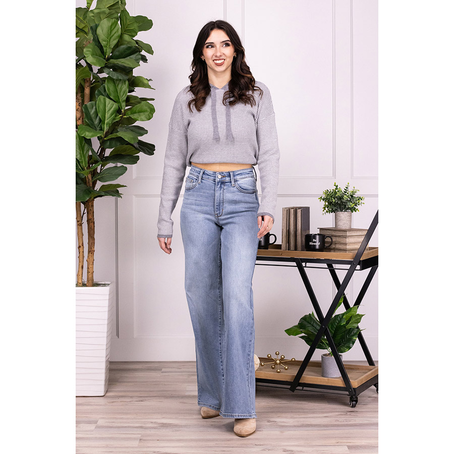 These full-size wide leg jeans are designed to flatter a variety of body shapes, and they are available in multiple sizes. The wide leg opening provides a balanced look that enhances your silhouette. When wearing our jeans, you can feel completely confident knowing that you are using a product that perfectly combines comfort and style, making it an essential part of your wardrobe.